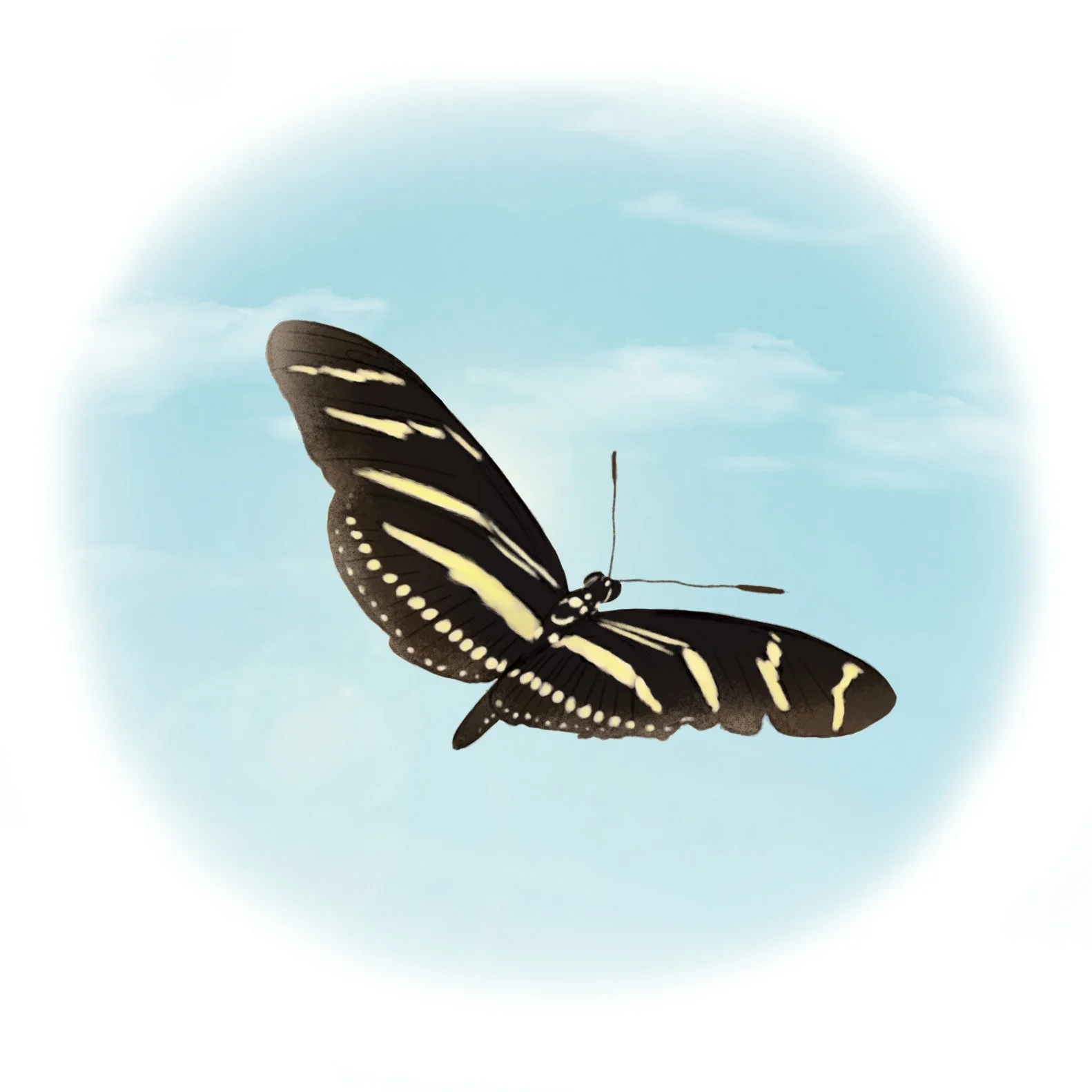 A Zebra Longwing Butterfly is a black butterfly with bright yellow stripes and a three-inch wingspan. It is the state butterfly of Florida.